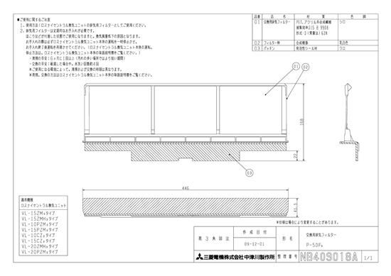 熱交換24時間換気システム交換用排気用フィルターVL-10PZM3(L/R)用